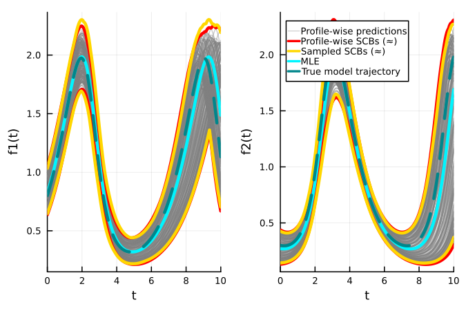 univariate_confidenceintervals!(model, dof=model.core.num_pars) # model.core.num_pars=4We also evaluate some points within the intervals for the purposes of profile visualisation.